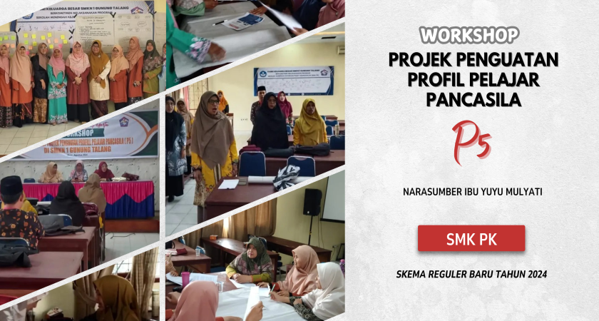Dalam rangka bantuan Pemerintah Program SMK Pusat Keunggulan Skema Reguler Baru Tahun 2024, Pelaksanaan Kegiatan Workshop Projek Penguatan Profil Pelajar Pancasila P5, pada Hari Kami dan Jumat, tanggal 29-30 Agustus 2024 di Ruangan KKPI SMKN 1 Gunung Talang bersama Narasumber Ibu Yuyu Mulyati.